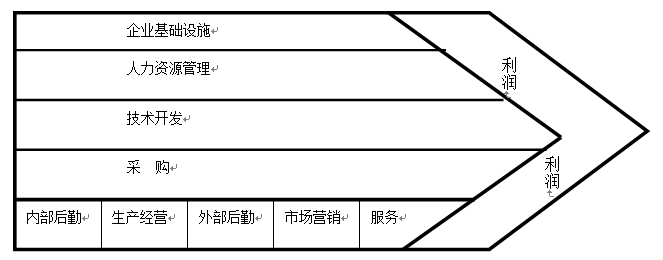 价值链列示了总价值、并且包括价值活动和利润。价值活动是企业所从事的物质上和技术上的界限分明的各项活动,这些活动是企业创造对买方有价值的产品的基石。利润是总价值与从事各种价值活动的总成本之差。